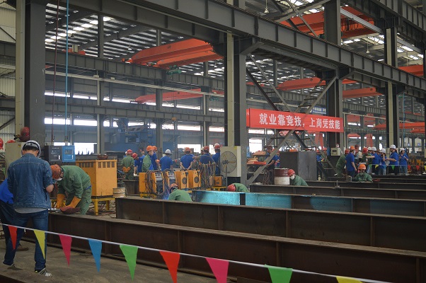 為迎接“五一”國際勞動節(jié),充分展示廣大職工立足本崗、創(chuàng)新創(chuàng)業(yè)的風采,進一步掀起職工技術比武和崗位練兵的熱潮。428日上午9時,由德安縣總工會主辦、江西省富煌鋼構有限公司承辦的德安縣中國夢・勞動美--“富煌杯”技能競賽在江西富煌正式啟動德安縣政協(xié)副主席、縣總工會主席桂天華,縣總工會副主席魏霞,縣總工會副主席張峰,江西富煌總經(jīng)理喬東應、常務副總經(jīng)理吳捷,江西富煌工會主席鉏金春等公司領導班子裁判員、參賽選手、公司員工300余人參加此次活動